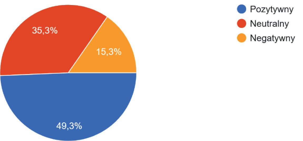 Ocena wpływu tych zmian na własną sytuację zawodową jest złożona. Ogólna percepcja okazała się w przeważającej mierze pozytywna lub neutralna. Niemal połowa badanych uznała, iż automatyzacja pozytywnie wpływa na sytuację związaną z ich zawodem, co świadczy o odbieraniu przez nich pewnego rodzaju satysfakcji wynikających z postępu (rycina 4).