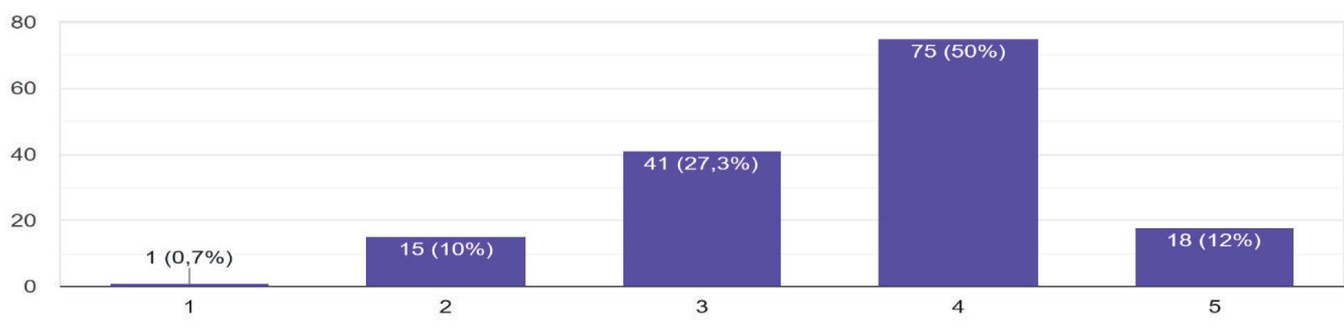Rozkład ocen respondentów zjawiska transformacji technologicznej w świetle rynku pracy w skali 1-5 (gdzie: 1 – zjawisko bardzo negatywne, 5 – zjawisko bardzo pozytywne)