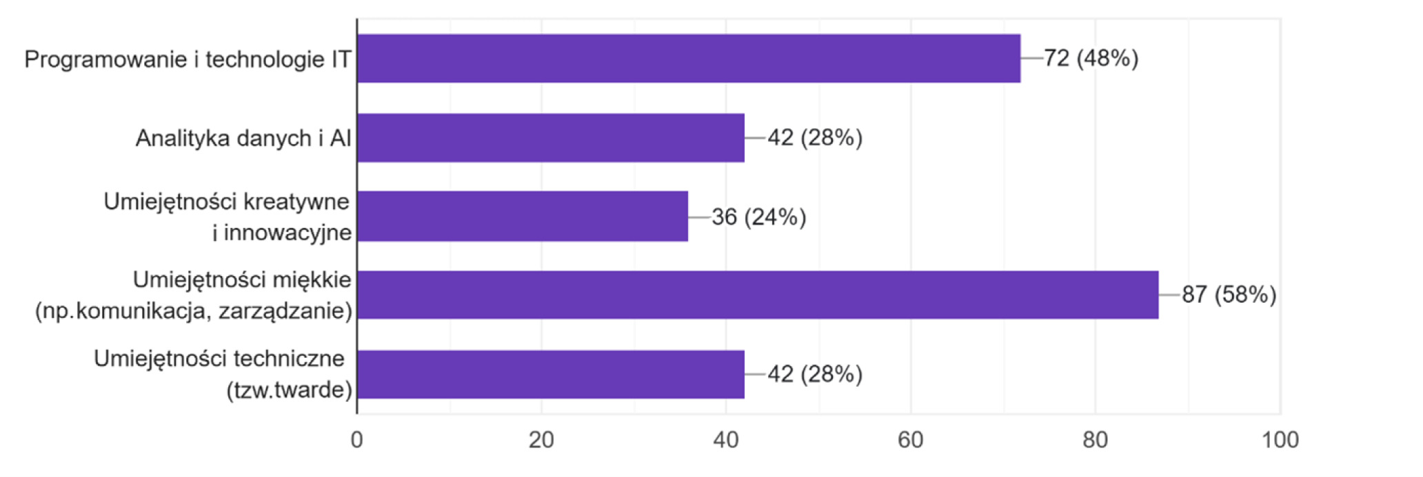 Rozkład umiejętności kluczowych w przyszłości według respondentów